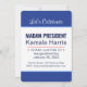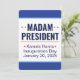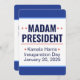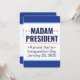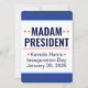 Invitación de dos lados. Señora Presidenta, Kamala Harris. Día de Inauguración 2025. 20 de enero de 2025. Es "Señora Presidenta" para usted. Si tiene problemas para decir el nombre de Kamala Harris (se pronuncia "Comma-la"), llámala "Señora Presidenta" o "señora Presidenta". El lado frontal es un estilo de invitación, el lado posterior tiene los detalles del evento. Descripción del diseño: ambos lados tienen un gran área central blanca de diseño con un ancho borde azul medio en la parte superior e inferior, y una línea azul claro que separa las áreas azul y blanco. La mayoría del texto es texto de plantilla. Descripción del diseño lateral uno: el lateral uno es un estilo de invitación. Los bordes azules en la parte superior e inferior están en blanco, y en el área blanca en el centro están las palabras, "Señora Presidenta" en muy grandes mayúsculas, negrita, sans serif azul oscuro, sobre dos líneas. La primera línea tiene dos estrellas rojas a cada lado de la palabra, "Señora". Separar esa parte superior del resto del texto es una delgada línea roja. Debajo de la línea roja hay tres líneas de texto en el tipo de letra sans serif azul oscuro. La primera línea dice "Kamala Harris", con una sola estrella roja inclinada a ambos lados, y las siguientes dos líneas son texto de plantilla para el Día de Inauguración y la Fecha de Inauguración. El segundo lado tiene más detalles sobre el evento. También tiene fronteras superiores e inferiores más amplias. En la parte superior de la frontera se puede leer, "Celebremos", con letras blancas. El borde inferior está en blanco. En el cuadro de diseño blanco hay 7 líneas de texto. La primera línea dice, "Señora Presidenta" en azul oscuro, todas las letras en negrita son sans serif font. Debajo de eso, la plantilla "Kamala Harris" de la primera parte, de forma que sea tan larga como la "Señora Presidenta" anterior. Debajo hay una delgada línea roja como la del lado 1. Debajo de la línea roja, tres líneas de texto con una fuente sans serif azul oscuro. La primera línea es una plantilla para el momento del evento. Las líneas dos y tres son las plantillas para Día de Inauguración y Fecha de Inauguración que se arrastran desde el lado uno. Debajo de esas líneas hay un poco de espacio adicional, y luego dos líneas de plantilla para la dirección del evento y la información del sitio web RSVP, todo en la misma fuente sans serif azul oscuro, pero más pequeña. Todo el texto es texto de plantilla, y todas las fuentes y colores se pueden personalizar.