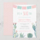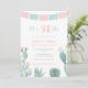Pizarra rosa y verde pastel El diseño de la invitación a la ducha Ella-Esta Niña Bebé con acuarela cactus / pera espinosa para un divertido Baby Shower de temática mexicana o Baby Sprinkle.