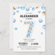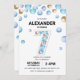 Invitación Séptima fiesta de cumpleaños, niño con globo azul