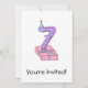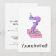 Invitación Séptimo cumpleaños Personalizado rosa y morado.