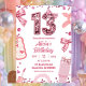 Sequins Pink Coquette Bow 13 Aesthetic Teenager Birthday Invitation, Bling Girl Birthday Invite, Editable Teens Birthday Party