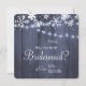 Personalizado, serás mi dama de honor. | criada de honor | tarjeta de texto editable por chica de flores con copos de nieve rústicos blancos y una hilera de luces brillantes colgando sobre fondo de madera gris oscuro del granero. Ideal para su elegante campo rústico de invierno | boda con temática de la tierra de las maravillas.