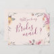 Moderno guión de "Serás mi dama de honor" rodeado de acuarela floral en amarillo pastel mudo, melocotón y malva, elegante y romántico, ideal para boda moderno, boda romántico y bodas en el jardín botánico en primavera y otoño. Vea todas las piezas coincidentes de la colección.