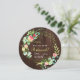 Bonito personalizada serás mi tarjeta de círculo de dama de honor con color de agua rosa rubor y rosas rojas de coral con azul verde azulado y follaje dorado sobre fondo de madera marrón oscuro con luces de cuerda. Apropiado para bodas de temática floral rústica o de verano en el patio trasero o otoño.