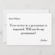 Se solicita esta hermosa hora de 5" x 7" para su servicio como mejor tarjeta de invitación de Man Groomsman. Esto es mejor para el novio. Encontraste a tu esposa, pero aún necesitas a tus hijos. Envíenles esta tarjeta de novio. Si estás buscando pedirle a alguien que sea tu padrino para tu futuro boda, entonces por qué no elegir estas cartas de groomsman. Esta tarjeta de invitación personalizada hará que tu amigo, hermano, primo, sobrino, hijo o cualquier otra persona que elijas sienta ese especial extra. Esta invitación se personaliza fácilmente haciendo clic en el botón personalizar de la imagen donde podrá cambiar el texto, la fuente y el tamaño. Puede invitar a sus mejores amigos con estilo con estas elegantes invitaciones. Es adecuado para el Mejor Hombre o para los Groomsmen. Envíenles esta tarjeta de novio.