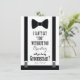 ¿Por qué no pedirle a alguien que sea su padrino para su próximo boda? Elige este clásico esmoquin negro, corbata de arco, correa tarjetas de groomsman. Esta invitación personalizada hará que su amigo, hermano, primo, sobrino, hijo o quien quiera que elija sienta ese especial extra. Esta invitación se personaliza fácilmente haciendo clic en el botón personalizar de la imagen donde podrá cambiar el texto, la fuente y el tamaño.