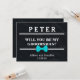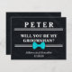 Este hermoso momento de 5" x 7" para acomodar la pizarra de charlas negras con tarjeta de invitación blanca. Esto es mejor para el novio. Si estás buscando pedirle a alguien que sea tu padrino para tu futuro boda, entonces por qué no elegir estas cartas de groomsman. Esta tarjeta de invitación personalizada hará que tu amigo, hermano, primo, sobrino, hijo o cualquier otra persona que elijas sienta ese especial extra. Esta invitación se personaliza fácilmente haciendo clic en el botón personalizar de la imagen donde podrá cambiar el texto, la fuente y el tamaño. Puede invitar a sus mejores amigos con estilo con estas elegantes invitaciones. Es adecuado para el Mejor Hombre o para los Groomsmen. Envíenles esta tarjeta de novio.
