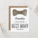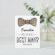 La carta del mejor hombre del país con una corbata de arco con manto rústico en el torrente, una redacción simple y un patrón de tela marrón en el tejido en el reverso. Estas tarjetas bodas de personalizable fácilmente se pueden cambiar para adaptarlas a sus necesidades, desde añadir su propio mensaje personal, hasta cambiar el tipo de letra y el color.