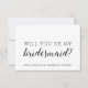 ¿Serás mi dama de honor? Diseño sencillo y moda en blanco y negro con un guión elegante. Ideal para invitar a amigos y familiares a participar en tu fiesta nupcial. Si necesita ayuda o productos a juego, por favor contáctenos a través de nuestra tienda. ¡Estamos encantados de ayudarle a hacer de su boda el día más hermoso! Diseñado exclusivamente para usted por Happy Dolphin Studio.