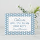 Estás considerando pedirle a alguien que sea tu padrino en tu futura boda, entonces ¿por qué no elegir estas divertidas tarjetas de padrino con estrellas azules? Esta invitación personalizada hará que tu amigo, hermano, primo, sobrino, hijo o quien sea que elijas se sienta especialmente especial. Esta invitación se personaliza fácilmente haciendo clic en el botón de personalizar debajo de la imagen, donde podrás cambiar el texto, la fuente y el tamaño.