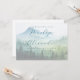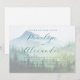 This wedding invitation features a serene and elegant design with a soft pastel color palette of light blue and green, creating a tranquil atmosphere. The background showcases a misty mountain landscape with layers of trees, adding a dreamy quality to the composition. Elegant script and serif fonts are used for the text, enhancing the sophisticated and romantic feel. The overall style is semi-realistic, focusing on natural beauty while maintaining readability, making it perfect for couples seeking a peaceful and whimsical wedding theme.