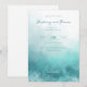 This elegant wedding invitation features a serene watercolor background in calming shades of teal and mint green, creating a tranquil and sophisticated atmosphere. The design showcases a balanced layout with clean lines and refined typography, blending modern minimalism with classic elegance. Prominent script fonts highlight the couple's names, while simple sans-serif text provides clear details about the event. Perfect for couples seeking an inviting yet formal aesthetic, this invitation sets the tone for a memorable celebration.