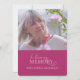 Anuncie el fallecimiento de su ser querido y los detalles de la celebración de la vida servicio conmemorativo con este simple anuncio de invitación de dos fotos conmemorativas rosadas. Personalice con su lugar, una foto en un marco ovalado y el nombre de su ser querido y detalles de RSVP, más una foto en el reverso con las palabras en memoria en un fondo rosa intenso. Arte y diseño original por www.mylittleeden.com