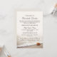 Una invitación conmemorativa para una ceniza esparcida en el mar, con una concha en la playa.