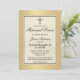 Invitación a un servicio fúnebre, memorial o celebración de la vida con un diseño cristiano clásico con una cruz y un borde impreso en oro. Deseándole mucha luz y fuerza para afrontar su pérdida.