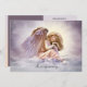 Invitación a un servicio funerario o memorial con una pintura de un ángel adorable en la parte frontal y tu foto personalizada en la parte trasera.