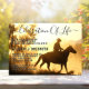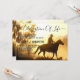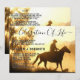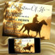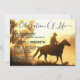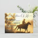 Invitación de funeral y anuncio de servicio memorial de vaquero y caballo con vaquero y caballo en un fondo de puesta de sol dorada. Este anuncio de servicio memorial de vaquero tiene espacio para el texto de su elección en la parte delantera, y puede poner un poema u otro texto en la parte posterior.