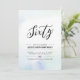 Celebra tu día especial con esta simple invitación mínima de cumpleaños número 60. Este diseño cuenta con un elegante guión grabado con letras "Sixty" con un suave fondo de lavado de acuarela azul y menta. En mi tienda BaraBomDesign hay más invitaciones para adultos de cumpleaños y suministros para fiestas.