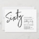 Celebra tu día especial con esta sencilla y elegante invitación de cumpleaños número 60. Este diseño presenta un "Sesenta" con letra de pincel con un diseño limpio en una combinación de colores negro y blanco. Más diseños disponibles en mi tienda BaraBomDesign.