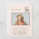 ¡Haz especial tu 70 cumpleaños con esta magnífica invitación rosa de Zazzle! Nuestro fiesta personalizado invita a presentar una hermosa letra de guión en negrita para un toque de lujo. Personalizar fácilmente los detalles de tu evento en la tarjeta y agrega tu foto favorita. Reúne a su familia y amigos más cercanos y celebre este hito con estilo!
