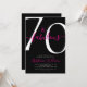 Guión de setenta y fabuloso, invitación moderna minimalista de cumpleaños número 70 rosa y negro que puedes personalizar y enviar para celebrar tu fiesta de cumpleaños número setenta. El "70 y fabuloso" está configurado utilizando tipografía de letra script popular. Los colores del texto se pueden cambiar utilizando el menú de edición.