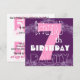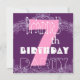 Invitación Sétimo cumpleaños, número grande rosa y morado par