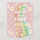Invitación Seven es una vibra Retro 7º Groovy Niña Rosa Años