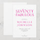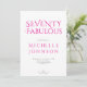 A beautiful, modern 70th birthday minimal invitation you can personalize for an amazing seventieth birthday party celebration. The words "Seventy and Fabulous" are set using popular pink typography. Change the photo, name and party details for a truly one-of-a-kind invitation.