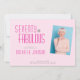 A beautiful, modern pink 70th birthday Photo invitation you can personalize for an amazing seventieth birthday party celebration. The words "Seventy and Fabulous" are set using popular hot pink typography. Change the photo, name and party details for a truly one-of-a-kind invitation. The opacity of your uploaded photo can be changed using the edit menu.