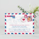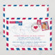 Una divertida y creativa recepción de boda para enviar a todos tus invitados anunciando tu boda en el destino. Diseño de correo aéreo a rayas rojas y azules con mapa del mundo. Un corazón rojo está sobre Sevilla, España. Agrega tu foto favorita como diseño de sello y un sello de recién casados con tu ubicación es agregado. Perfecto para tu boda en el destino. Si tienes una ubicación diferente, por favor envía un correo electrónico a paula@labellarue.com ANTES DE PERSONALIZAR O REALIZAR UN PEDIDO para que pueda crear un nuevo diseño para que trabajes con él.