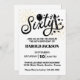 Divertida invitación de fiesta de cumpleaños en blanco y negro de 60 años, cambia todo el texto por ti mismo cuando pidas