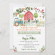 Esta invitación incluye lindos animales de granja con calabazas, hojas caídas y vegetación.