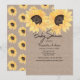 Esta invitación a la ducha de girasol color agua neutra de género con hermosas flores de girasol otoñales colocadas sobre un fondo marrón texturado. Personalice la información de su fiesta.