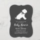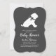 ¡Incluya al hermano mayor o al bebé de piel de hermana en la celebración con este adorable diseño de ducha de bebé de perro Shar-Pei! Perfecto para un amante de los cachorros con un bebé en camino. El Shar Pei se encuentra al lado de un adorable cochecito vintage. El fondo gris de la pizarra lo convierte en un lugar perfecto para una ducha de matrimonio o una ducha de matrimonio.
