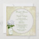 Elegante Bridal Shower invitaciones con un lindo frasco de albañil de vidrio verde y blanco e hidrangea blanca bonito ilustracion de flores vintage en un elegante y chic collage de estilo antiguo con hermosos decoraciones ornamentadas blancas, una libélula y escritura descolorida en un elegante patrón de arlequín verde pálido. En el reverso de las invitaciones hay una glamorosa estampada de perlas blancas y una alfombra de encaje con texto para que usted pueda personalizar con los detalles de su fiesta. Elegante, moderno y de moda invita a las duchas de primavera, verano, otoño e invierno. Todo el texto se puede personalizar fácilmente para satisfacer sus necesidades y puede cambiar el estilo de fuente, color y tamaño de la fuente si lo desea. Si necesitas ayuda para personalizar tu producto, por favor contacta conmigo a través de mi tienda y estaré encantado de ayudarte. Estera de perlas, ©Hazel Kinvig-Paul www.design-a-dream.co.