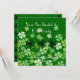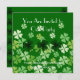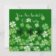 Arte feliz y lindo creado por Naomi Ochiai de Japón. Diseño de Shamrock verde para irlandeses y otros que aman la cultura irlandesa. Patrón de trébol de cuatro hojas en el fondo. Diseño de invitaciones de fiestas para empresas privadas. ¡¡Puedes personalizar de texto!!