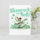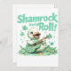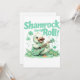 Fije el tono para una celebración del Día de San Patricio con esta animada invitación que incluye un patito con una guitarra decorada con chamrock y el texto "Shamrock and Roll". Perfecto para fiestas con temática musical o reuniones festivas.