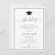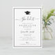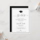 A simple minimal graduation party invitation card with black and white colors. The text details and image can be personalized.