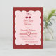 Elegant and classy Invitations to a Bridal Shower or Bachelorette Party with the phrase "KISS THE MISS GOODBYE."Miss in script letters on red lips.