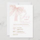 featuring a soft blush pink bow, delicate pearls, and hand-lettered script reading She’s Tying the Knot.