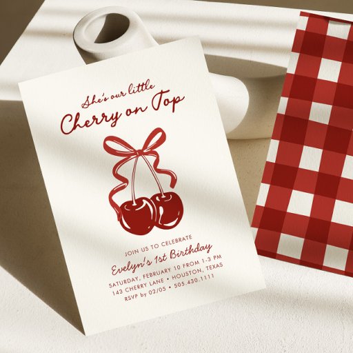 Invitación She's Our Little Cherry On Top Girls 1st Birthday