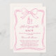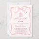 A soft ivory colored background, decorated with a hand drawn pink bow. Personalize and add a name and party details.