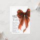 Make a stylish first impression with this She’s Tying The Knot QR Code Bridal Shower Invitation, designed for modern brides who love timeless elegance. Showcasing a coquette rust orange watercolor bow paired with an elegant rust orange and white theme, this invitation blends romantic femininity with chic minimalism.