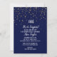 Esta Shhh Es una invitación sorpresa para una fiesta de retiro es perfecta para una elegante celebración de retiro. El diseño presenta confeti de oro falso sobre un fondo azul marino con elegante caligrafía blanca.