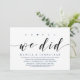 Invitación Sí, Lo Hicimos, Boda Elopement Fiesta Inv