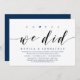 Moderno guión de estilo azul marino elegante, carta de invitación a los bodas (Oh Sí, Lo Hicimos). Es perfecto para su celebración casual junto al lago de boda.