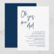 Anuncie elegantemente su feliz eterno después con nuestra moderna tarjeta de invitación a la celebración de la independencia del boda de color azul marino, "Oh Yes we did", barra de caja sólo para adultos. Adaptada para parejas que continúan con su historia de amor, esta invitación logra un perfecto equilibrio de sofisticación y encanto, y establece el escenario para un evento inolvidable. Con un moderno diseño de escritura contemporánea, le da un toque de gracia eternidad a su día especial. Diseñada por el talentoso Teesha Derrick, esta invitación es una expresión elegante de tu amor perdurable.