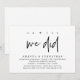 Invitación Sí, lo hicimos, Cena de Elopement de Boda Moderna