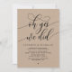 Anuncie elegantemente su feliz eterno después con nuestra moderna tarjeta de invitación a la celebración del boda de kraft marrón marrón moderno, "Oh si lo hicimos". Adaptada para parejas que continúan con su historia de amor, esta invitación logra un perfecto equilibrio de sofisticación y encanto, y establece el escenario para un evento inolvidable. Con un moderno diseño de escritura contemporánea, le da un toque de gracia eternidad a su día especial. Diseñada por el talentoso Teesha Derrick, esta invitación es una expresión elegante de tu amor perdurable.