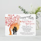 La silueta y el árbol de la pareja de compromiso con la luna acentuada en los colores naranja y rojo otoño. Personalice el texto como prefiera en la parte delantera y posterior de esta invitación.